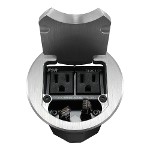 Surface Mounted Connectors 9' AC Cord and 2 CAT6 connectors - Round - Aluminum