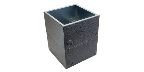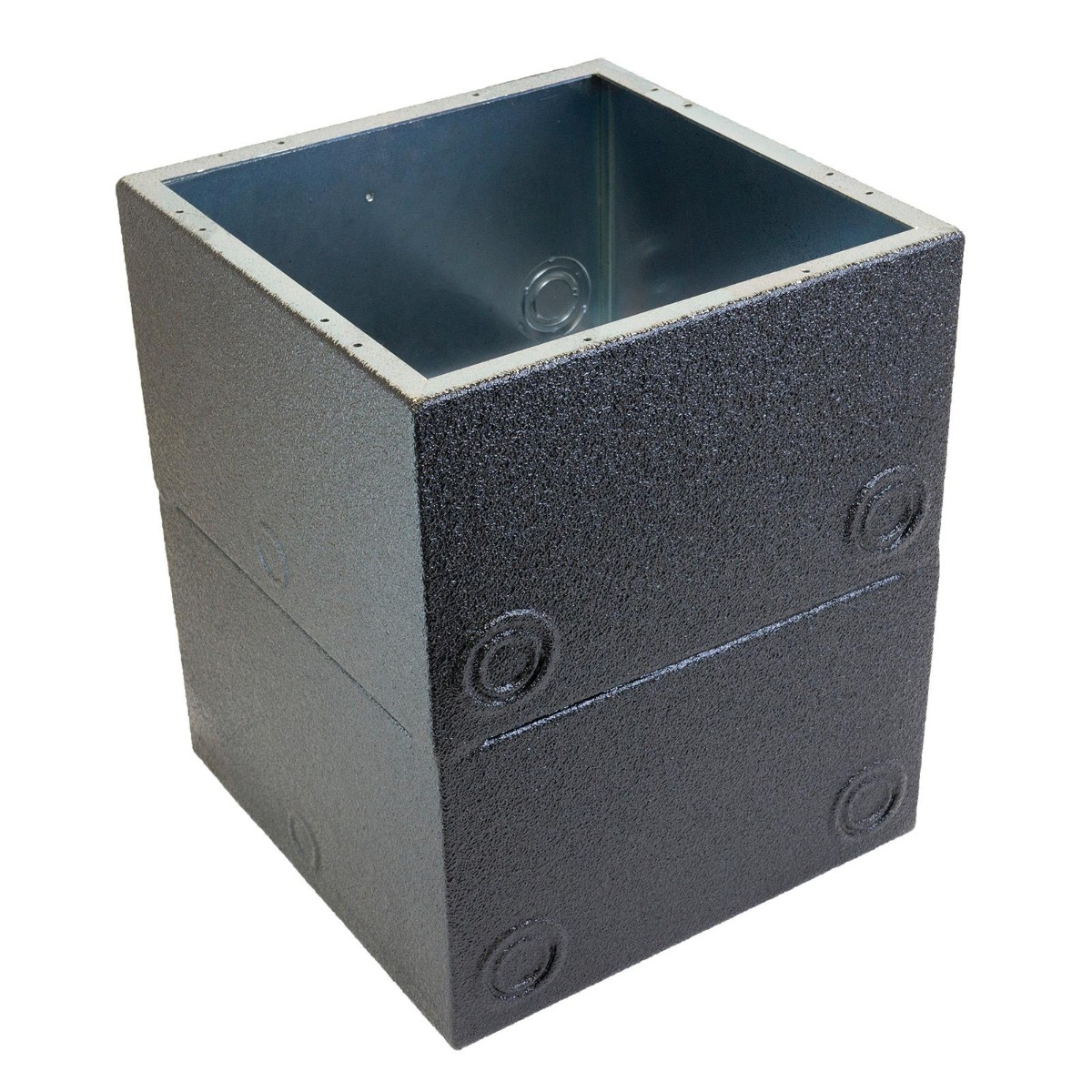 Rough in boxes are heavy duty welded 14 gauge steel and mate exclusively with all Full Stage Pockets to support conduit connection, voltage isolation, and to protect the stage pocket under the floor surface. Always in stock for onsite delivery, back boxes arrive complete with a temporary protective cover that is discarded when the pocket is installed. Wet back boxes are ASTM electrodeposited with clear zinc for corrosion protection before an additional jacket of polyurethane is applied to provide moisture resistance to the box.
