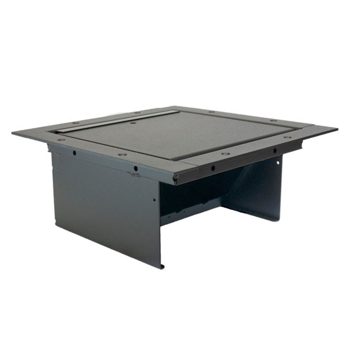 The Full Stage Pocket is made of heavy duty steel and is used to conceal and protect high voltage and low voltage connections in this one dual application floor box. The slant panel configuration protects connectivity from damage and dust by placing connections upright, below the floor surface and under the solid steel lid. The Flush Flange modification allows the pocket to sit virtually flush on solid surface floors, and the large open access panel area allows terminated panels to be installed before or after pocket installation to support multi-phase construction applications.