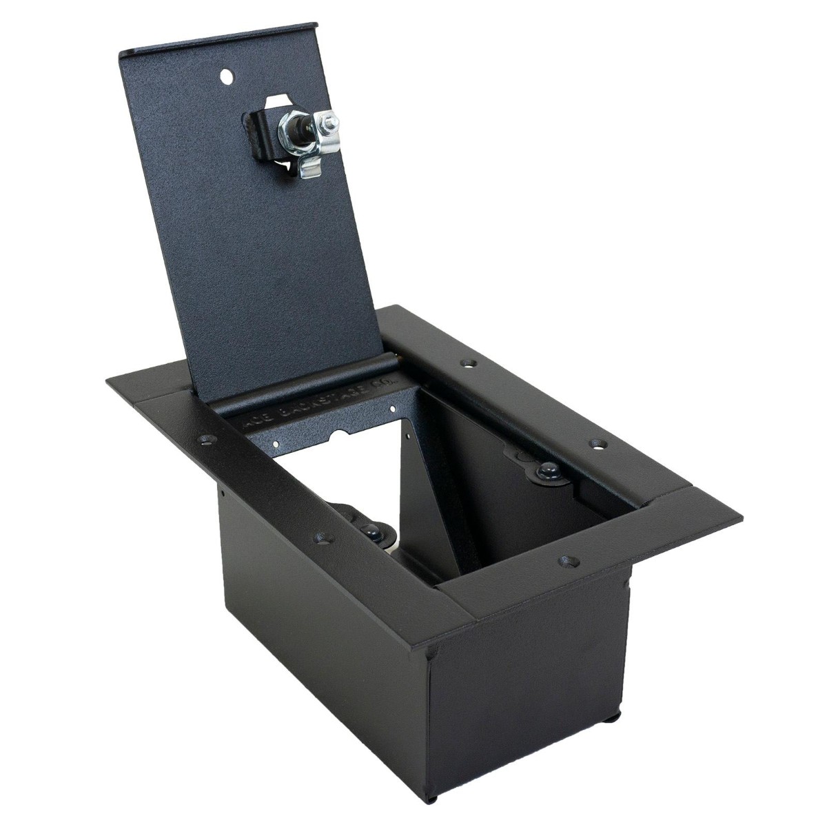 This Half Stage Pocket is made of heavy duty steel and is used to conceal and protect high voltage or low voltage connections in one floor box. The slant panel configuration protects connectivity from damage and dust by placing connections upright, below the floor surface and under the locking lid to keep connections secure. The Half Pocket is designed so terminated panels can be installed before or after pocket installation to support multi-phase construction applications.
