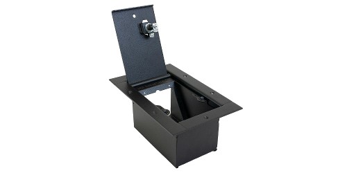 This Half Stage Pocket is made of heavy duty steel and is used to conceal and protect high voltage or low voltage connections in one floor box. The slant panel configuration protects connectivity from damage and dust by placing connections upright, below the floor surface and under the locking lid to keep connections secure. The Half Pocket is designed so terminated panels can be installed before or after pocket installation to support multi-phase construction applications.