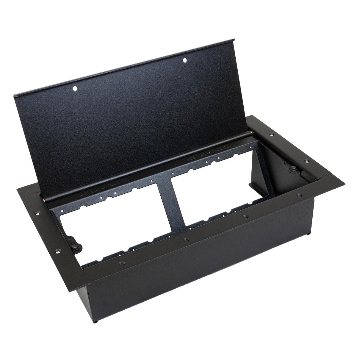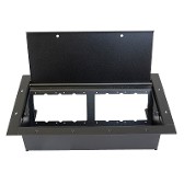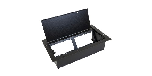 The Double Wide Stage Pocket is double the size of the standard Full Pocket and is made of heavy duty steel to conceal and protect high voltage and low voltage connections in this one dual application floor box. The slant panel configuration protects connectivity from damage and dust by placing connections upright, below the floor surface and under the solid steel lid. The Double Wide Pocket is designed so terminated panels can be installed before or after pocket installation to support multi-phase construction applications.
