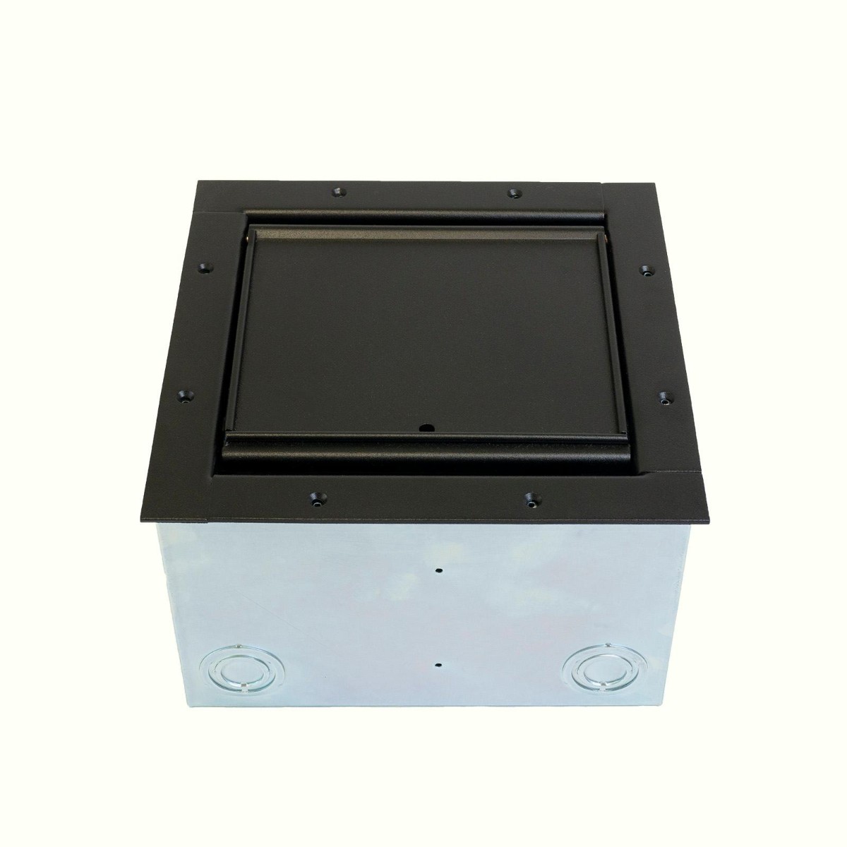 The Super Stage Pocket is designed to provide almost 3x the connectivity capacity compared with the similarly sized Full Stage Pocket. Engineered to include a horizontally mounted, isolated panel bracket between high and low voltage connections, this dual application pocket offers modular options that support application flexibility. Customized connectivity is protected and concealed under the recessed carpet lid while cables egress neatly onto the floor through the cable exit slot. This lid option sits recessed in the pocket so when flooring is glued inside the rimmed lid edge, the lid, pocket flange, and surrounding floor are visually flush and esthetically constant.