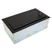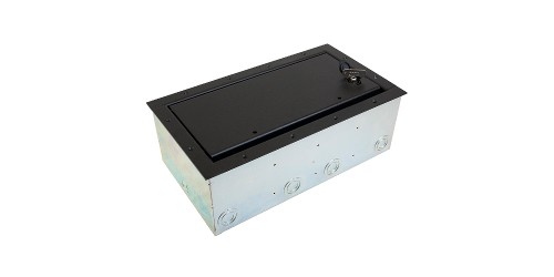 The extra large capacity Super Double Wide Stage Pocket features a horizontal panel design that allows up to 50 connectors in one floor box. Modular brackets can be added to provide high voltage AC isolation if power is required for dual application functionality. Customized connectivity is protected and concealed under the modified locking lid, allowing cables to egress onto the floor through the slotted Cable Exit. The Super Double Wide Pocket System is designed to support just in time delivery for multi-phase construction installation.