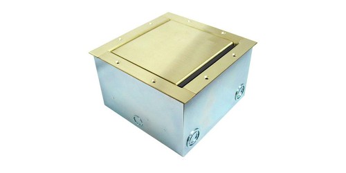 The Super Stage Pocket is designed to provide almost 3x the connectivity capacity compared with the similarly sized Full Stage Pocket. Engineered to include a horizontally mounted, isolated panel bracket between high and low voltage connections, this dual application pocket offers modular options that support application flexibility. Customized connectivity is protected and concealed under the brushed, flush mounted brass lid. Finished so the above floor lid and flange show solid brushed brass and allow cables to egress neatly onto the floor through the cable exit slot.