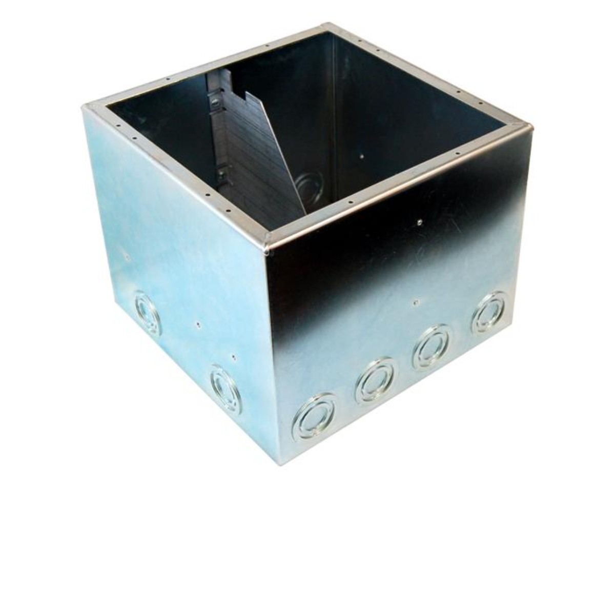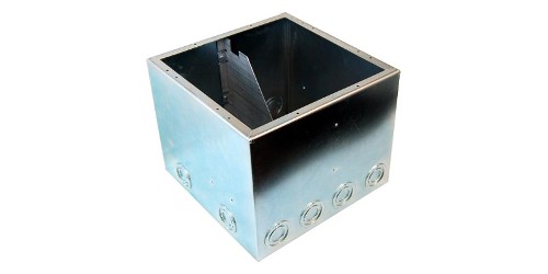 Rough in boxes are heavy duty welded 14 gauge steel and mate exclusively with all Full Stage Pockets to support conduit connection and protect the stage pocket under the floor surface.