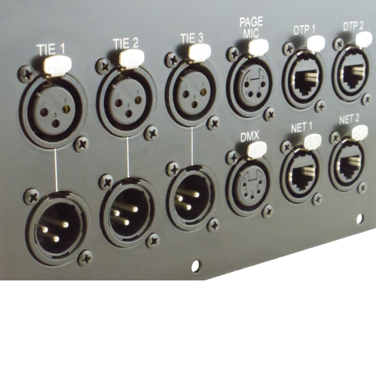 CONNECTRIX Panels are CNC machined to precisely mate with ACE Stage Pockets and are always in stock. They are made from high strength, tough, aluminum alloy (6061-T6) at .062" thick and finished in oven-cured black powder coat to resist scratching and never bend. Panels provide header space for custom labeling of any connector position or pocket identification.