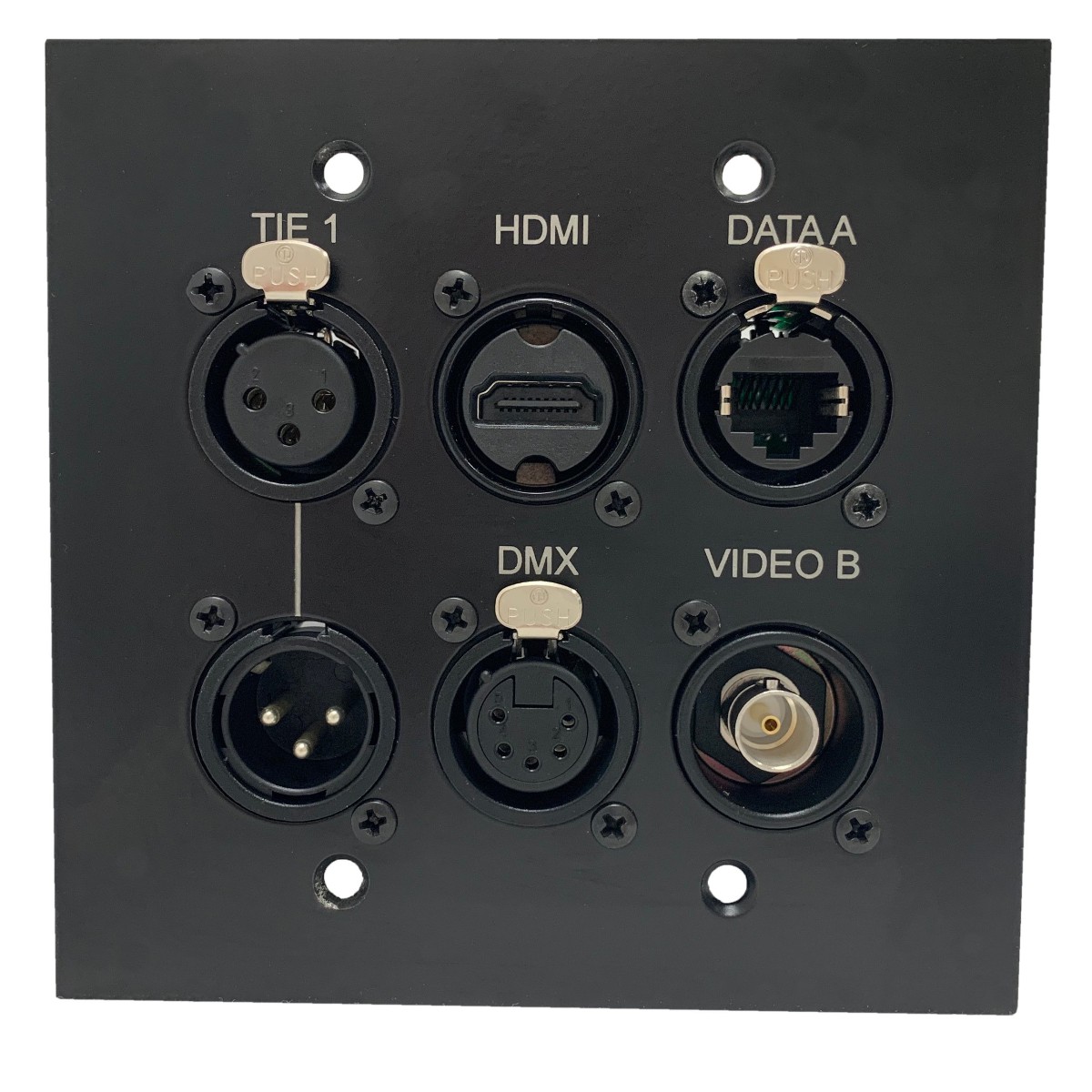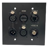 CONNECTRIX Wall Panels are CNC machined to precise gang sizing standards and mate with ganged wall boxes. They are flat with box edges and are made from high strength, tough, aluminum alloy (6061-T6) at 1/16" thick. With a oven-cured powder coat finish to resist scratching and finger prints, WP-200 Series panels provide header space for custom labeling of any connector position or for panel name identification.