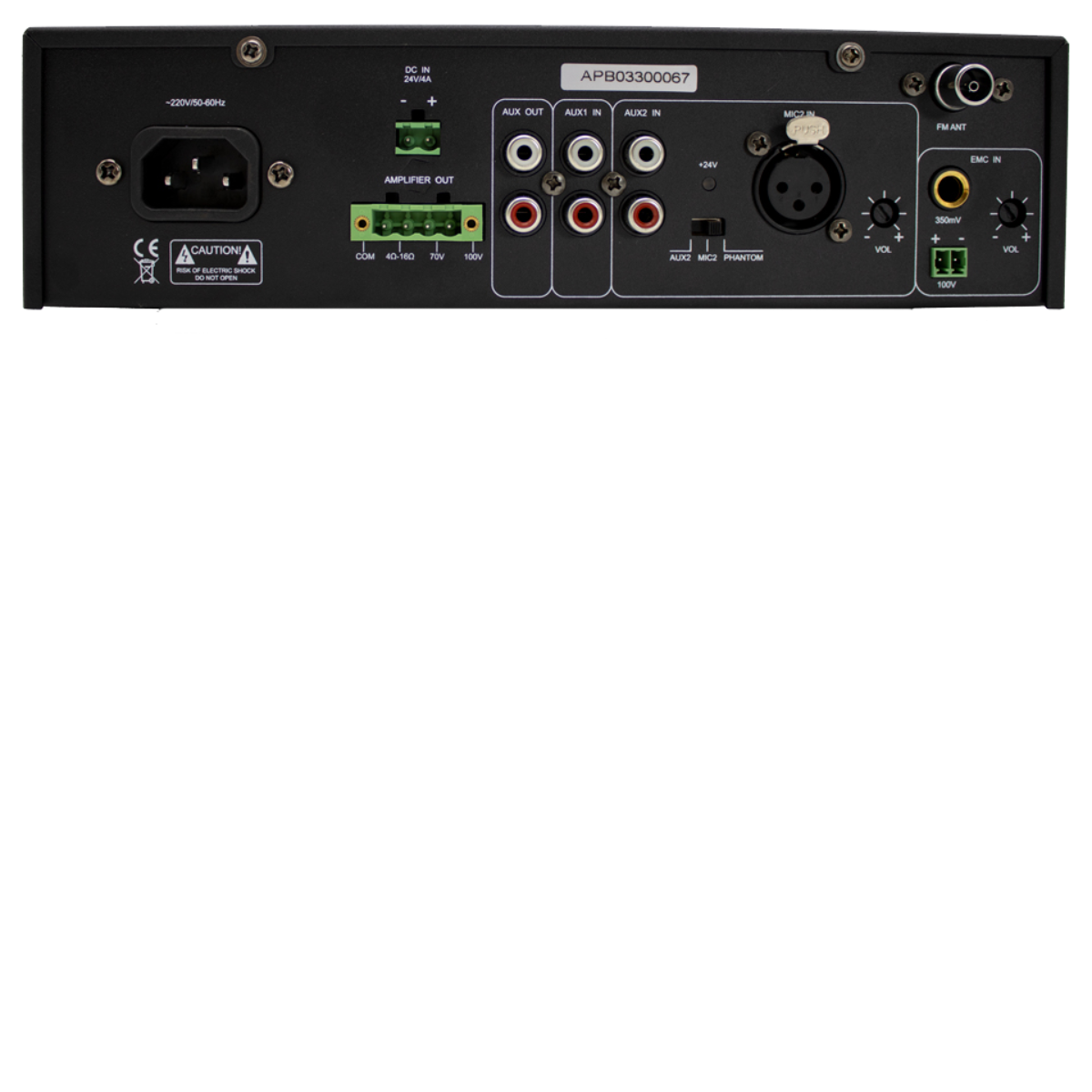 - Speaker Output of 100V or 70V and 4 -16 Ohms rated power output of 120W