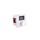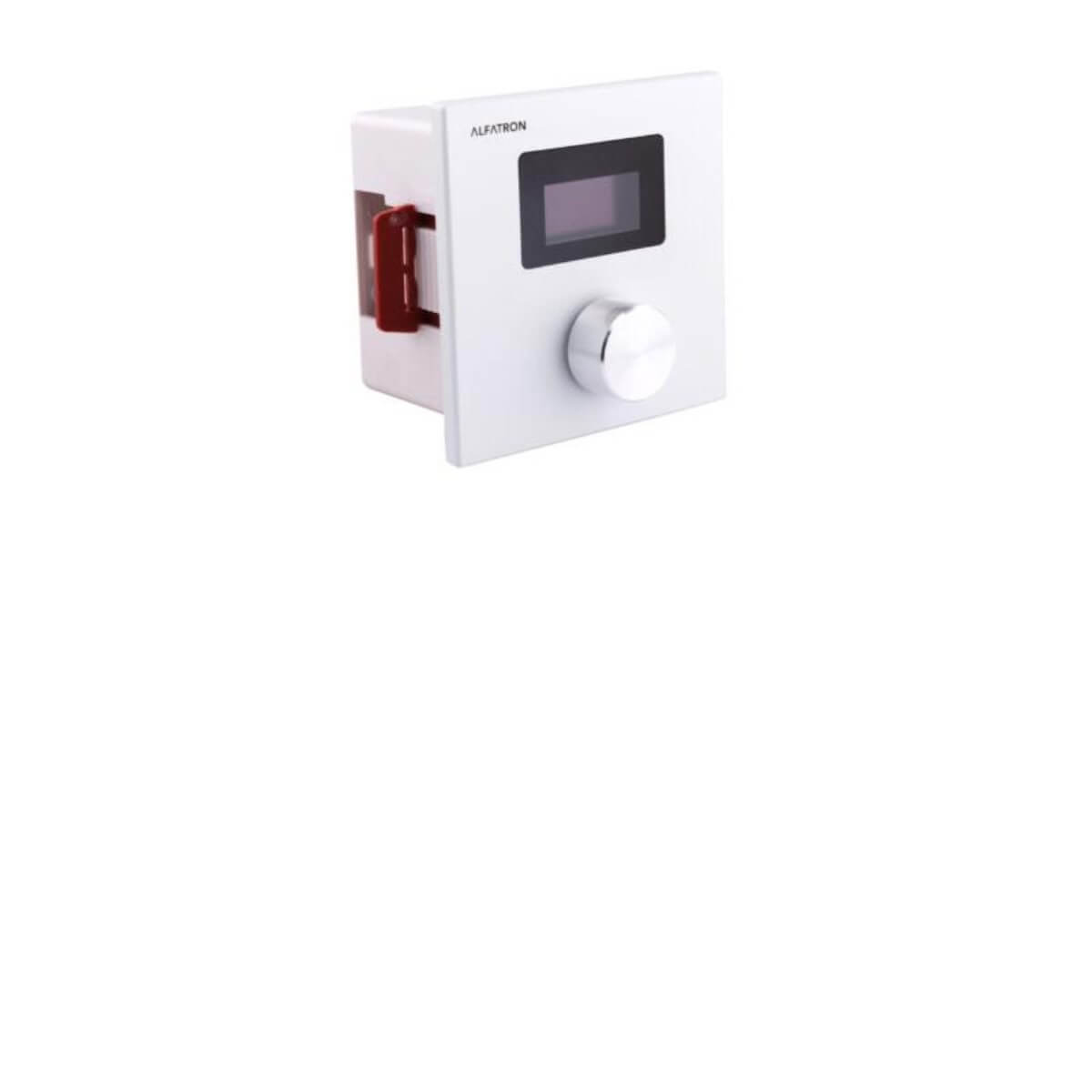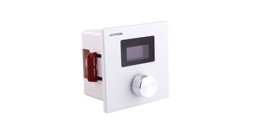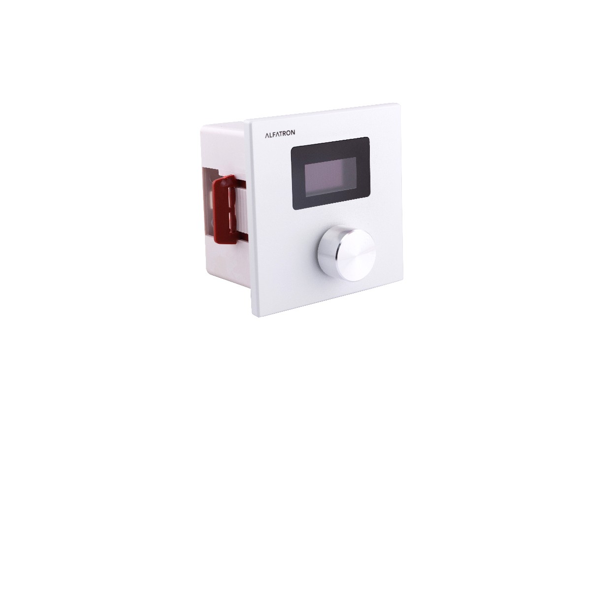 The wall mounted ALF-CP1L control panel consists of a 1.3" OLED screen and a rotary encoder with Push-to-Select. The 2-line OLED provides customizable menus and sub-menu controls of Volume, routing, presets and more. Easily programmed and managed from the Alfatron DSP software using a single CAT5 connection for control and power.