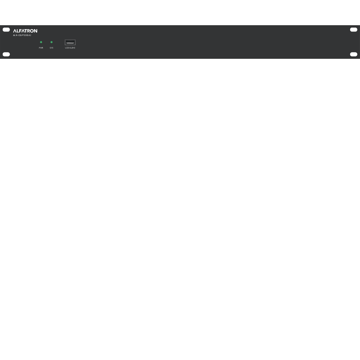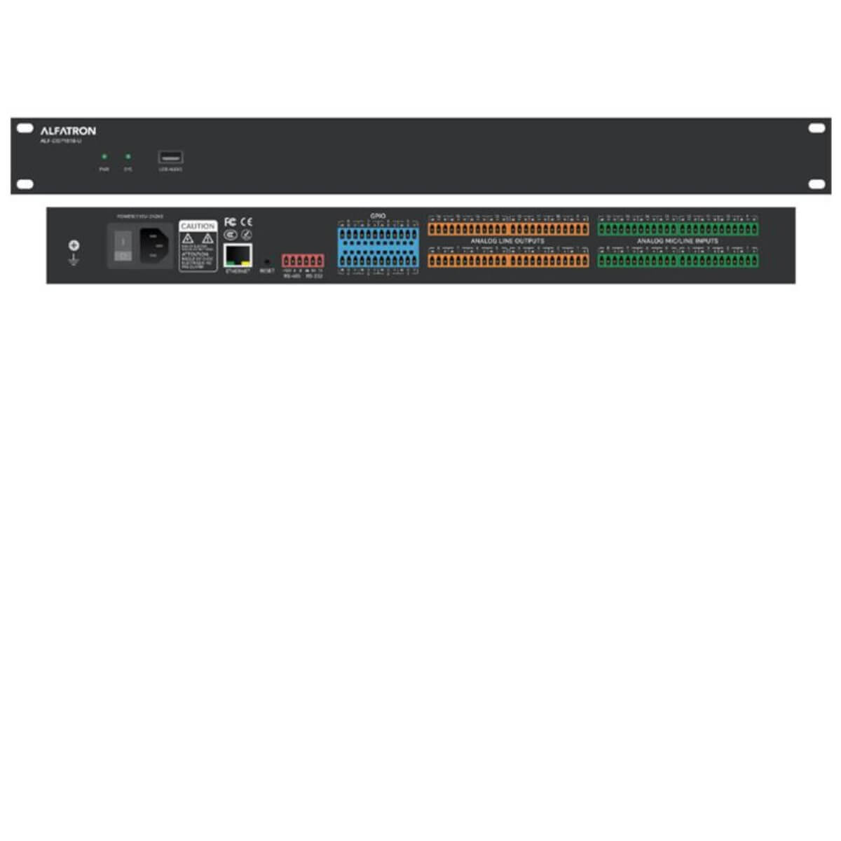 The ALF-DSP1616-U Audio Digital Signal Processor (DSP) is equipped with several core technical features to simulate the work of an audio engineer. The ALF-DSP1616-U consists of 16 analogue inputs and 16 analogue outputs, USB Audio, 8 General Purpose Input / Output (GPIO) connections, RS-232, RS-485, and IP control. It is equipped with advanced audio processing modules including Acoustic Echo Cancellation, Noise Suppression, and Auto Mixing. The Analogue to Digital (A/D) and Digital to Analogue (D/A) convertors on the Input and output stage of the ALF-DSP1616-U features 48kHz sampling rate and a bit rate of 24Bits, providing high definition audio sampling and processing. It also has a dynamic range of 110dB and a maximum level of +24dBu. It features input and output processing modules including: Expanders, Compressors, Acoustic Gain Compensation (AGC), Parametric EQ, Feedback Suppression, Ducker, Gate, Ambient Noise Compensation, Graphic EQ, and Delay. DSP-based audio management, routing, processing, and control, is facilitated via a computer running the GUI Software for the ALF-DSP1616-U Hardware. The Alfatron DSP Controller software is a Windows-based application, which is used to configure and control the ALF-DSP1616-U. The Alfatron DSP Controller is a full-feature application, including parameter adjustments and peripheral accessory settings of all modules, such as RS232, RS485, and click-and-drag panel configuration. The most interesting part is the user interface which allows the engineer to customize the user interface so that the integrator can edit it, or the onsite technicians, or end users can operate it. Advanced security features make it possible for the end user to only access the controls allowed by the engineer, or the designer.