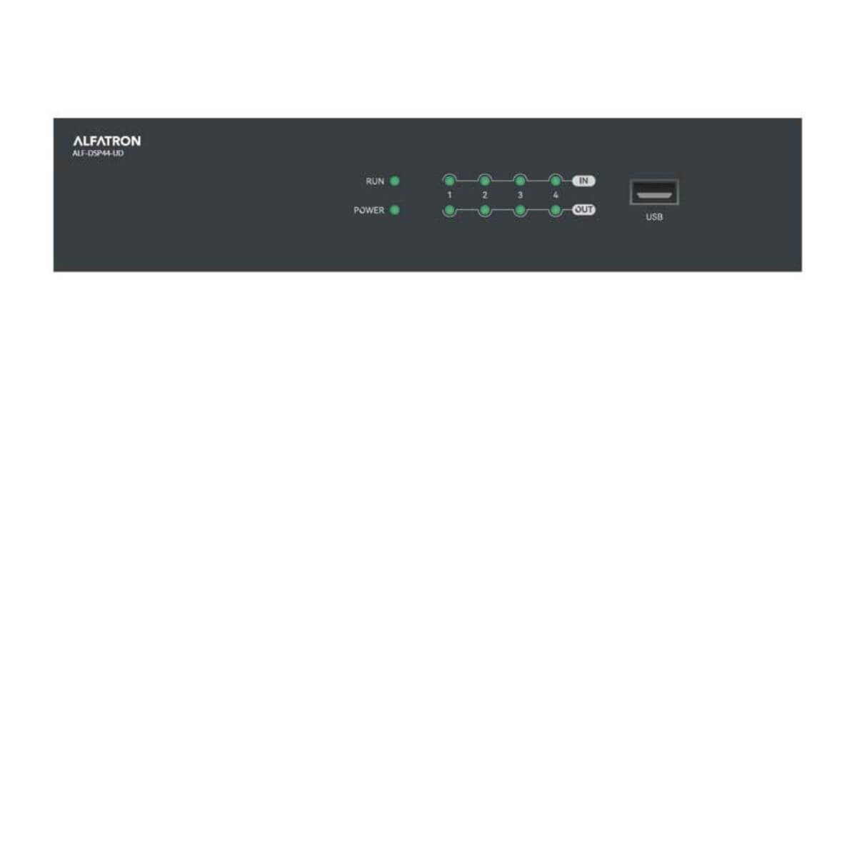 The Alfatron ALF-DSP44-UD Audio Digital Signal Processor (DSP) is equipped with several core technical features to simulate the work of an audio engineer. The ALF-DSP44-UD consists of 4 analogue inputs and 4 analogue outputs, 4 Dante inputs and 4 Dante outputs, USB Audio, RS-232, RS-485, and IP control. With two ADI SHARC 21489 processors, it is equipped with advanced audio processing modules including Acoustic Echo Cancellation (2 Channels), Noise Suppression, and Auto Mixing. The Analogue to Digital (A/D) and Digital to Analogue (D/A) convertors on the Input and output stage of the ALF-DSP44-UD features 48kHz sampling rate and a bit rate of 24Bits, providing high definition audio sampling and processing. It also has a dynamic range of 110dB and a maximum level of +24dBu. It features input and output processing modules including: Expanders, Compressors, Acoustic Gain Compensation (AGC), Parametric EQ, Feedback Suppression, Ambient Noise Compensation(ANC), and Delay. DSP-based audio management, routing, processing, and control, is facilitated via a computer running the GUI Software for the ALF-DSP44-UD Hardware. The Alfatron DSP Controller software is a Windows-based application, which is used to configure and control the ALF-DSP44-UD. The Alfatron DSP Controller is a full-feature application, including parameter adjustments and peripheral accessory settings of all modules, such as RS232, RS485, and click-and-drag panel configuration. The most interesting part is the user interface which allows the engineer to customize the user interface so that the integrator can edit it - or the onsite technicians, or end users can operate it. Advanced security features make it possible for the end user to only access the controls allowed by the engineer, or the designer.