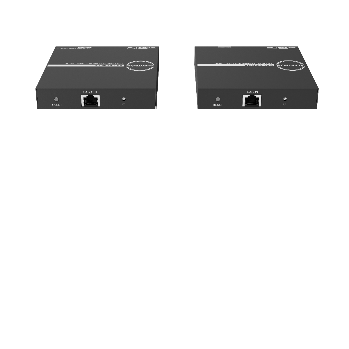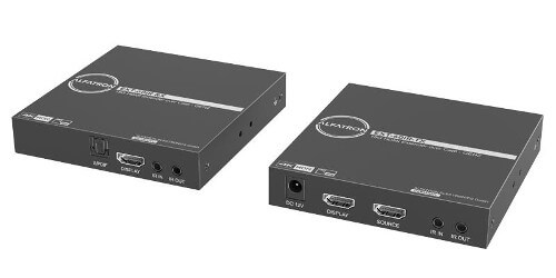 4K 18Gbps HDMI over CAT extender set. Can cascade Display out of Tx to another set. SPDIF AUDIO OUT