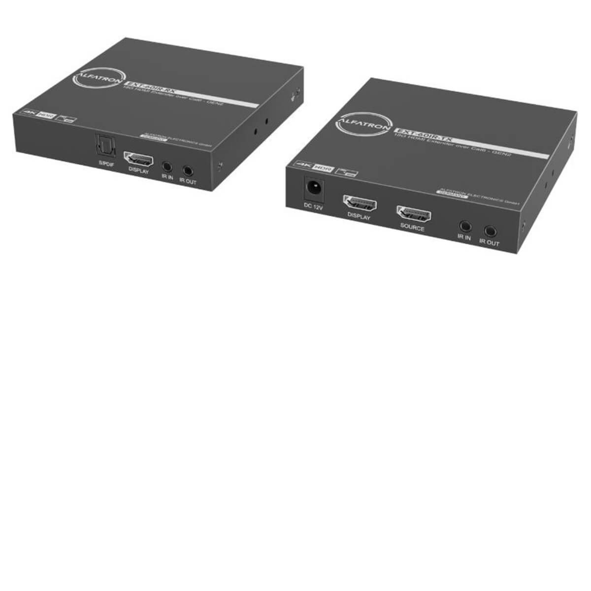 The ALF-EXT60IR-18G(Gen2) is a point-to-point extender set for HDMI 2.0 and IR signals - the set supports 4K / UHD video @ 60 Hz with 4:4:4 Chroma sampling, as well as HDMI data rates up to 18 Gbps, and is HDCP 2.2 compliant. It provides HDMI transmission up to 230 feet / 70 meters for 4K@60Hz 4:4: 4 or 1080p, over single CAT6 cable. It supports video resolution down-scaling, and the 4K input can be automatically downscaled to 1080p output for compatibility with 1080p display.