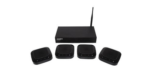 USB conference device with 4 wireless microphones.