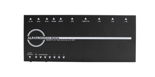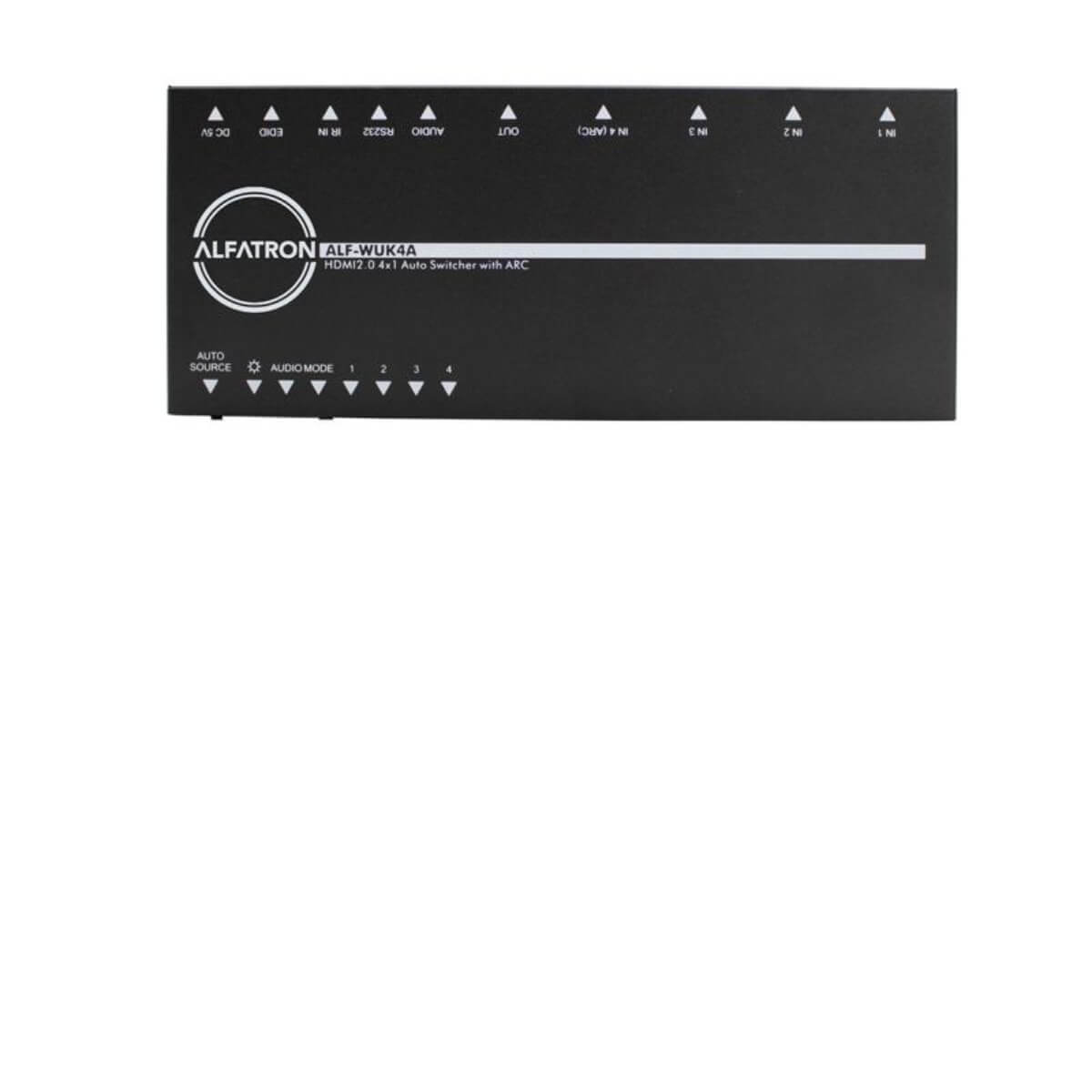 The ALF-WUK4A is a 4K HDMI switcher with 4 HDMI inputs and 1 HDMI Output with Audio De-Embedding, and EDID, RS232 and IR Control. Select any of the inputs via the front panel button or IR Remote, the corresponding indicator on the front panel will illuminate to show real-time I/O connection status. Compliance with HDMI 2.0 & HDCP 2.2, 4K@60 4:4:4 HDMI Switcher 4×1 can transmit uncompressed 4K (at max) signal. The ALF-WUK4A boasts comprehensive audio capacities including PCM, Dolby Digital, DTS, and DTS-HD. It also provides an ARC audio output socket to transfer ARC audio to ARC speakers. Moreover, 4K HDMI Switcher 4×1 supports convenient online firmware update through the USB port.