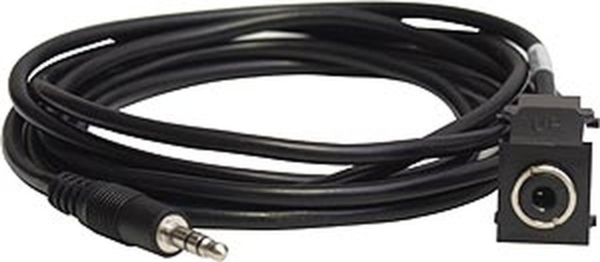 The Altinex CM11316 is a 3.5mm stereo female mini jack, mounted in a black snap-in port. Includes six-foot cable, terminated in 3.5mm stereo mini male.