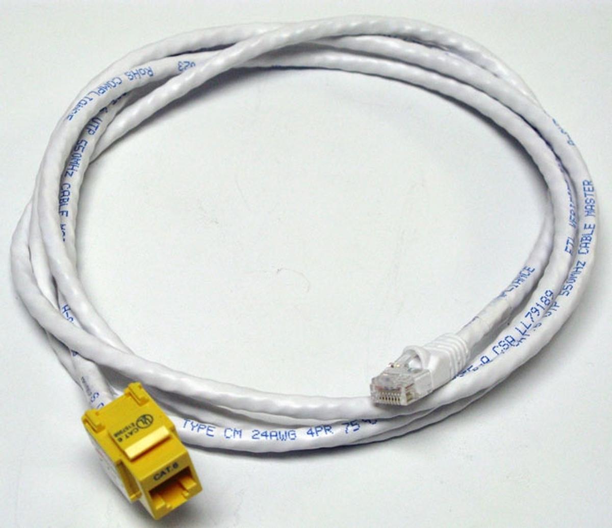 The Altinex CM11353 is a yellow CAT-6 RJ-45 female to male snap-in assembly with 6' cable.