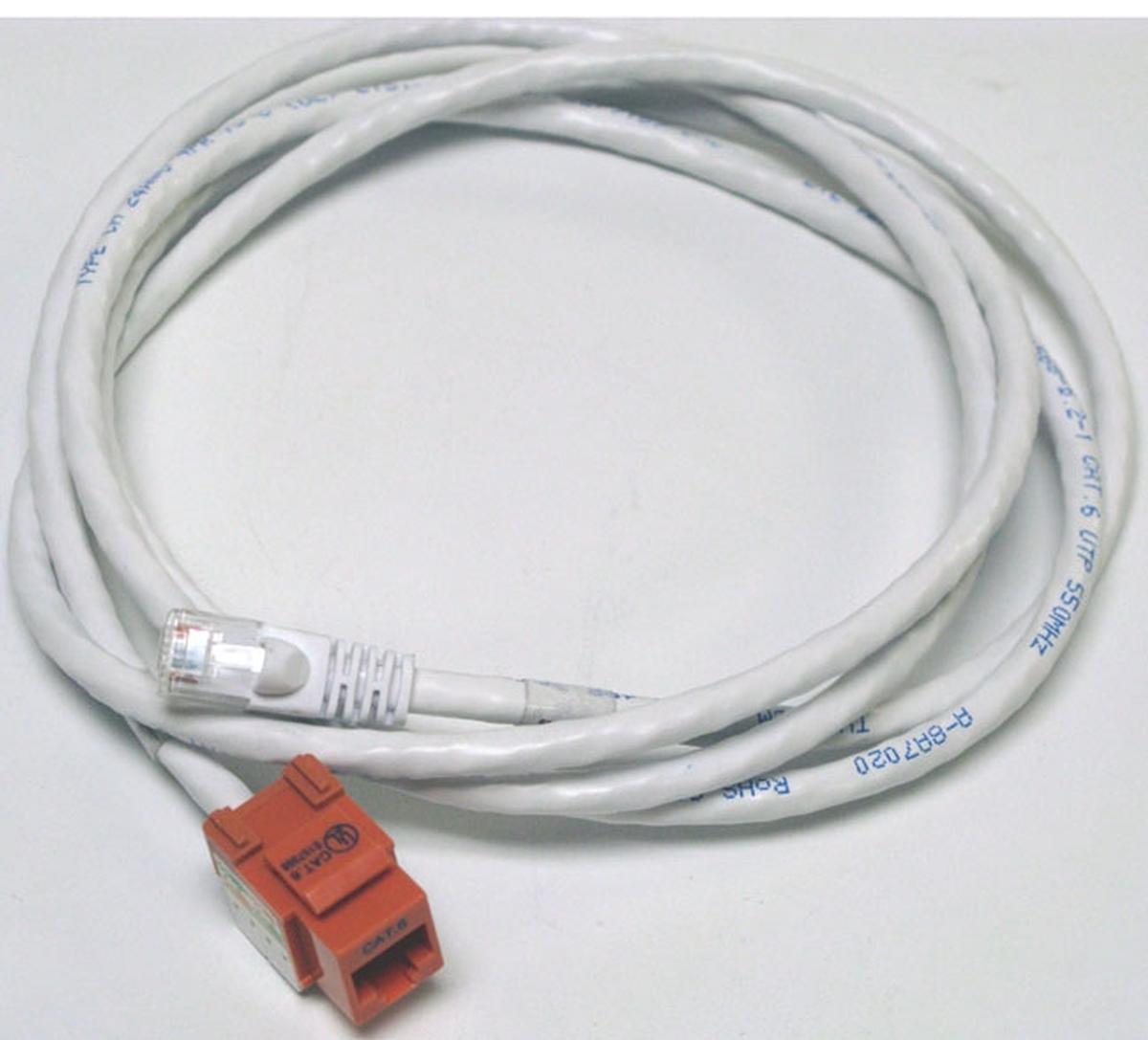 The Altinex CM11359 is a orange CAT-6 RJ-45 female to male snap-in assembly with 6' cable.