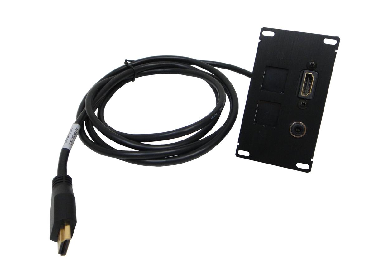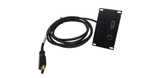 The Altinex CNK-IP-112 is an insert plate with 1 HDMI, 1 audio connector, and 2 blank snap-ins. It covers (8) screw hole sets of the available 13 in the Cable Nook Jr line. The HDMI has a 6' female to male cable and the audio is terminal block. Use the blank snap-ins to fill in your choice of connections.