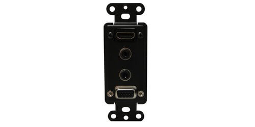 The Altinex CNK-IP-212 is a 1 HDMI, 1 VGA, and 2 audio plate for Cable Nooks. The plate goes into the SP1104SC plate that installs in a Cable Nook. The HDMI and VGA connections are female to female and the audio are terminal blocks.