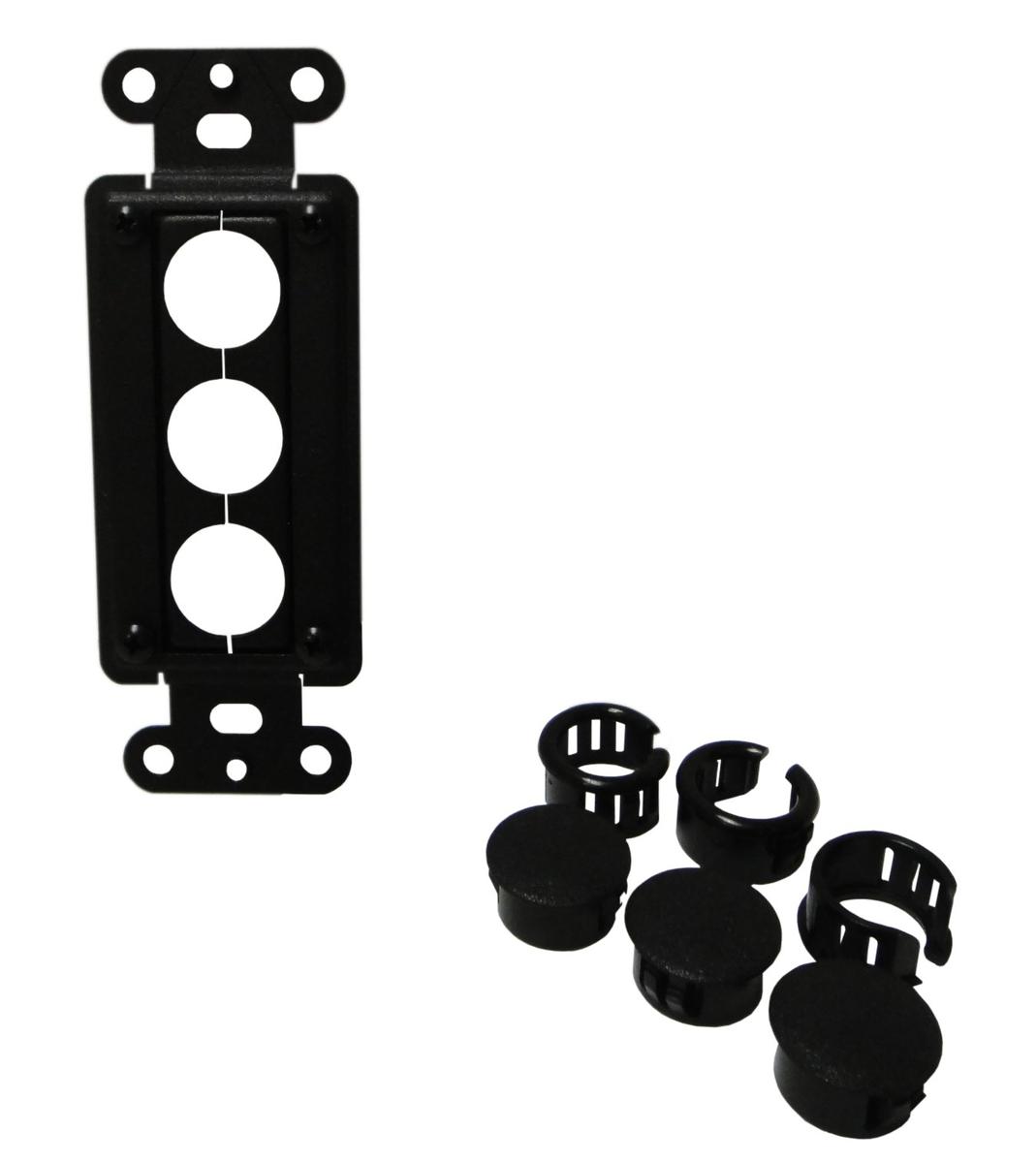 The Altinex CNK-IP-215 is a 3 grommet hole plate for Cable Nooks. The plate goes into the SP1104SC plate that installs in a Cable Nook. The grommet openings are .625"to hold your cable ends.