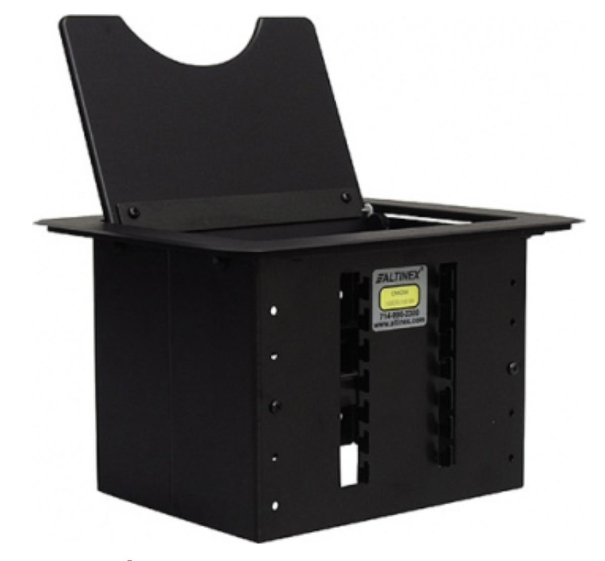 The Altinex CNK200 modular Cable-Nook uses a trapdoor style half-moon lid which stays flush with your table surface when not in use. Inside the box is empty allowing you to configure your CNK200 to your liking.