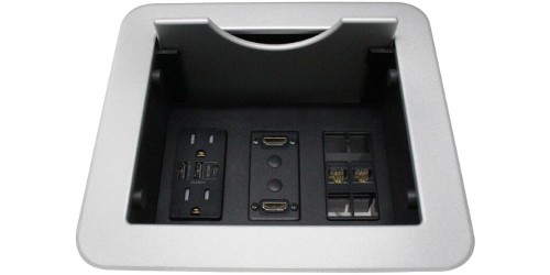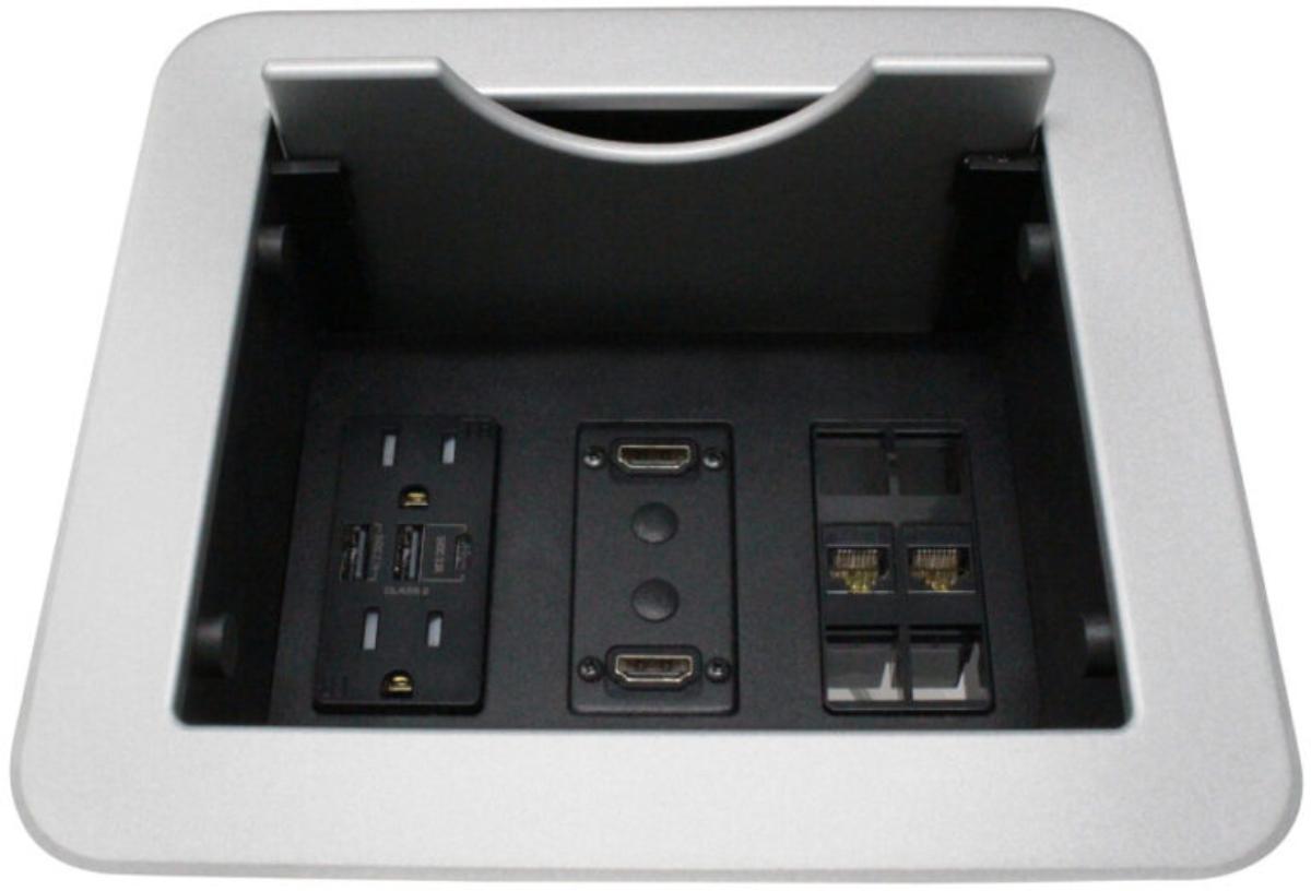 Cable Nook Table Box - Power, USB Charging, HDMI, RJ45 Connections - Silver