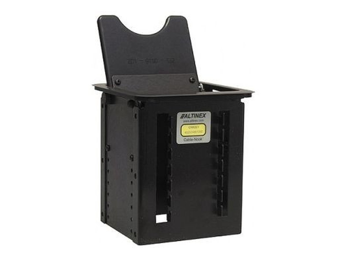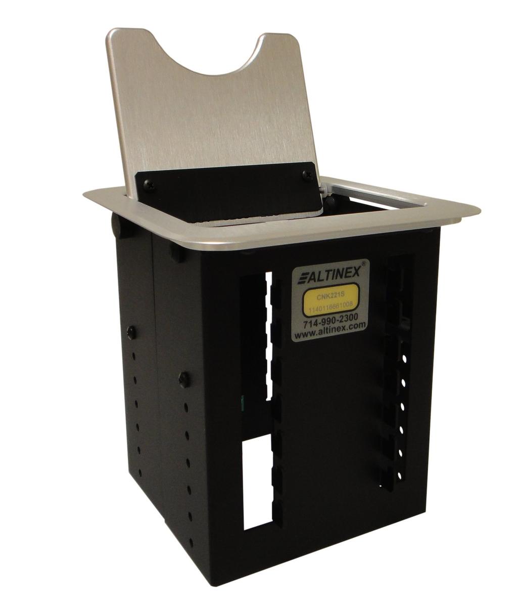 The Altinex CNK221 is a customizable modular cable nook for your conference room table. A cable-nook uses a trapdoor style half-moon lid which stays flush with your table surface when not in use. Inside the CNK221 is empty, this allows you to build your table box exactly how you need.