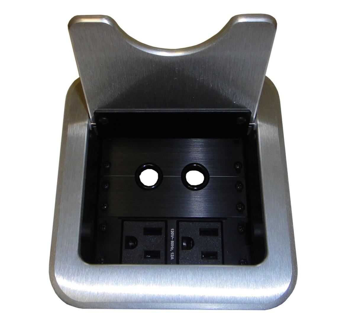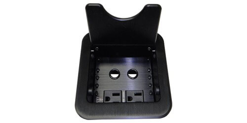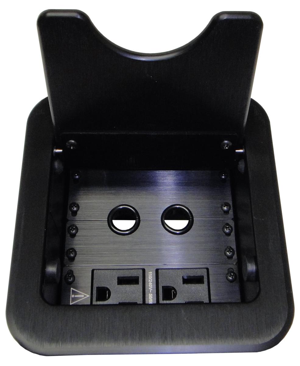 The Altinex CNK261 Cable-Nook Jr gives you 2 power and 2 grommet holes for your table. A cable-nook uses a trapdoor style half-moon lid which stays flush with your table surface when not in use. The cables remain connected to a presentation system (even with the lid closed), enabling the user easy access to them and for connection to video, audio, and other media sources needed. The two 1/2" grommet holes provide an easy solution to retain your 2 cable ends, no more searching for cables.
