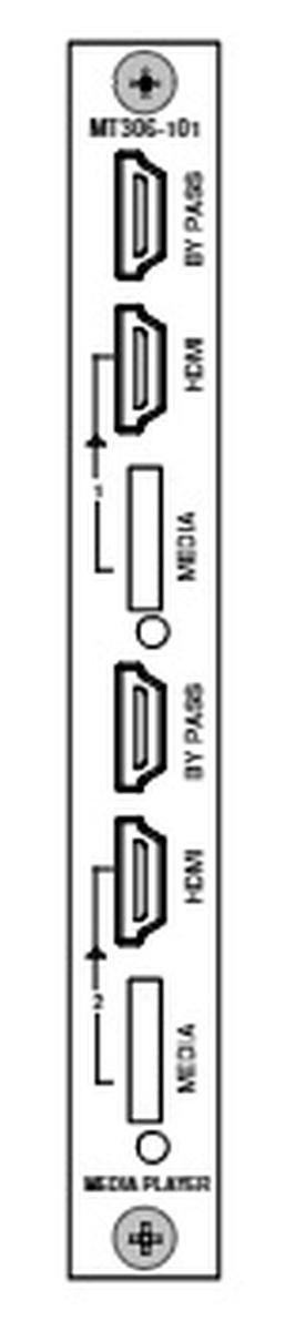 Introducing the MT306-101 Dual Media Player Video Processor Card from Altinex. This card is an HD 1080p media player featuring USB flash memory, 8 play files, 8 independent tracks, and auto-play function on power-up. It is also manufactured with 400mA Output Current, Power/Signal Status LEDs, and Output with bypass. This product is HDCP complian on bypass and NON-HDCP compliant for video conferencing.