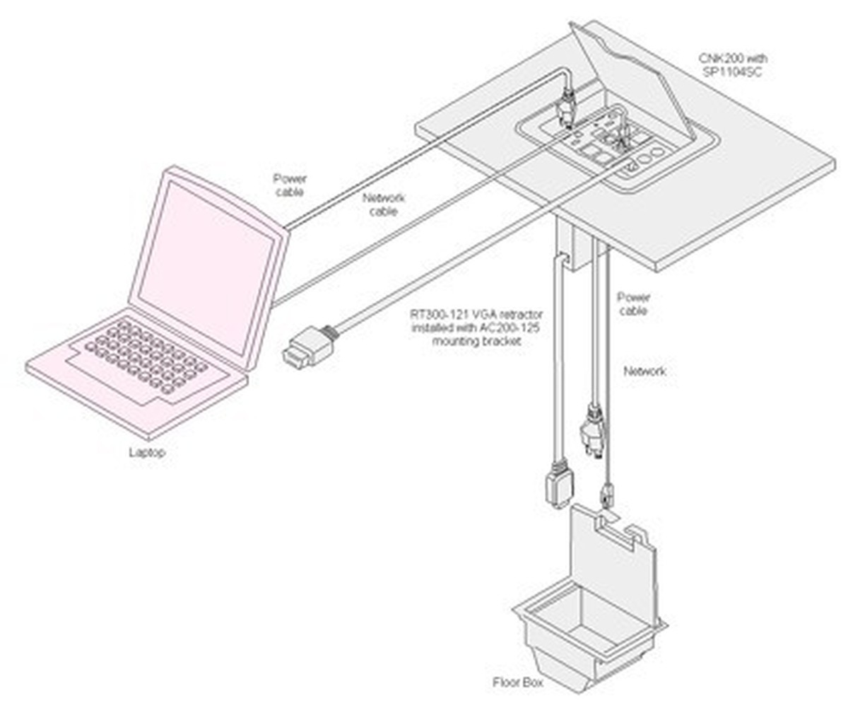 The Altinex RT300-145 is a retractable Cat6 cable designed for full size Altinex Cable Nooks or the smaller sized Cable Nook Jr models. The retractor attaches to the sold separately AC200-125 for full size Cable Nooks, or the sold separately AC221-125 for the Cable Nook Jr units. The full size Cable Nook can hold 2 brackets, each bracket can hold 2 retractors for a total of 4. The smaller Cable Nook Jr models can hold 2 brackets, each bracket can hold 2 retractors for a total of 2.