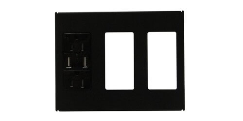 The Altinex SP1104SC is a two power and 2 charging USB plate for Cable Nooks and the power works for USA, Canada, Mexico, and Japan. The plate goes into a CNK200 Cable Nook, there are 2 extra openings that can be populated with your choice of connections. The USB ports can be used to charge smart phones and tablets and provide 3A total of charging. It comes with a 9' power cable terminated with a single male plug, the charging USB ports do not require and extra power cord.