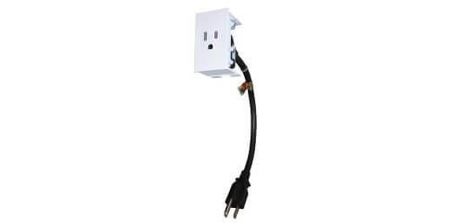 The Altinex TB110-101 is a modular U.S. power plate that is easy to install by snapping it into the TB100-X01/TB100-X01C/TB100-00X modular unit. The AC receptacle is rated at 13A/125V, and the plate has a 1 ft. 16AWG UL, cUL listed and CSA power cable attached.