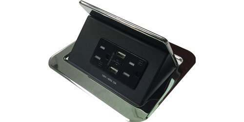 The Altinex TNP355C is a power charging table box that pops up from your table surface. When open it has 2 power and 2 charging USB ports, all this charging is supplied by just a single 9' power cord. The USB supplies up to 3A of total power for your smart phones and tablets. The top is a beautiful polished chrome surface.