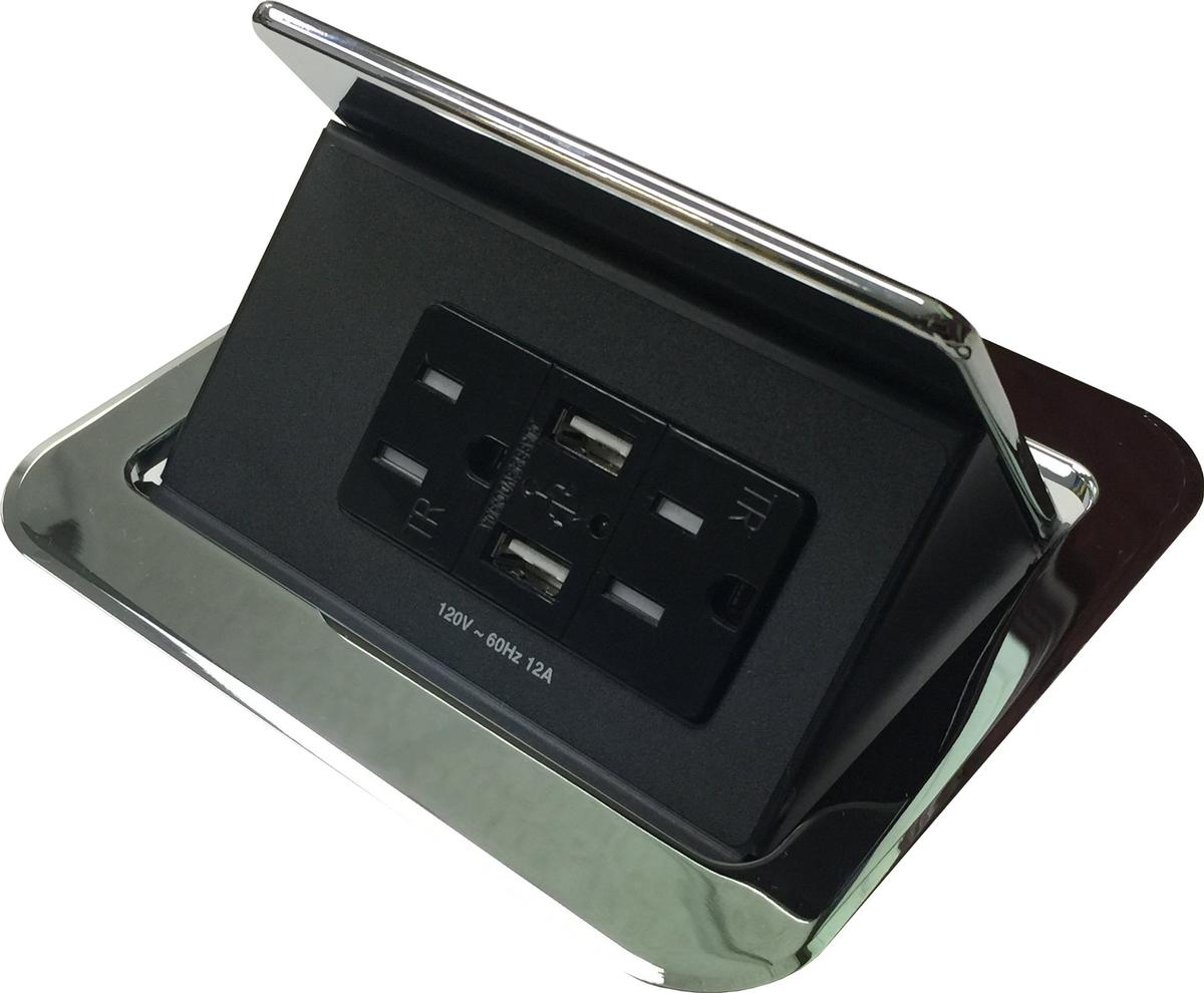 Pop Up Power Box with 2 Power and 2 Charging USB - Chrome