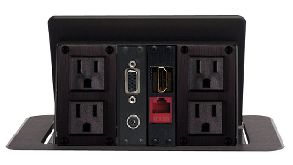 Pop Up w/ 4 Power, 1 HDMI, 1 VGA, 1 Audio, and 1 Cat6