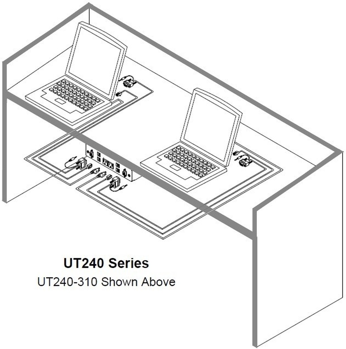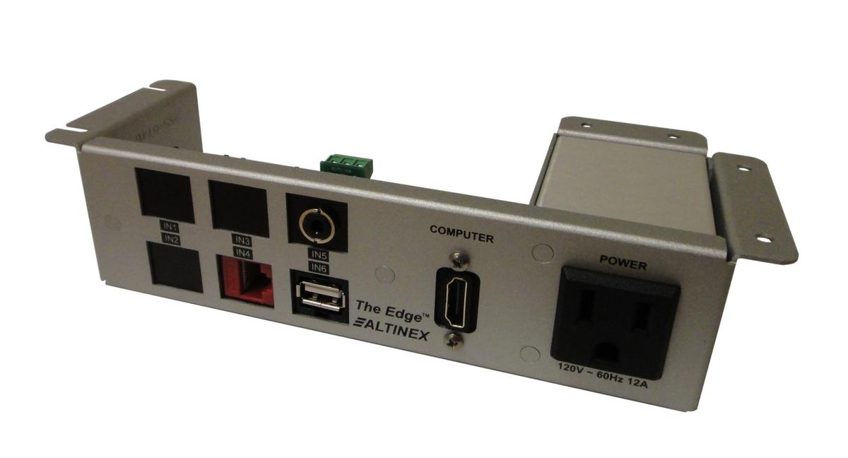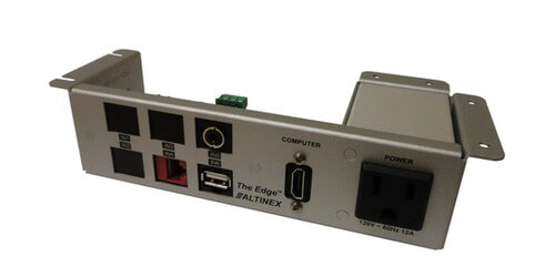The Altinex UT240-125S is an under table audio, video, and power mounted unit. It features 1 power, 1 HDMI, 1 audio, 1 Cat6, 1 USB, and 3 keystone blanks. The 3 keystone blanks allow you to purchase more snap-ins now or for expansion in the future. Under table mounts are ideal when you don't want to cut or drill into your table, or you need direct access from a certain spot in your table or lectern.
