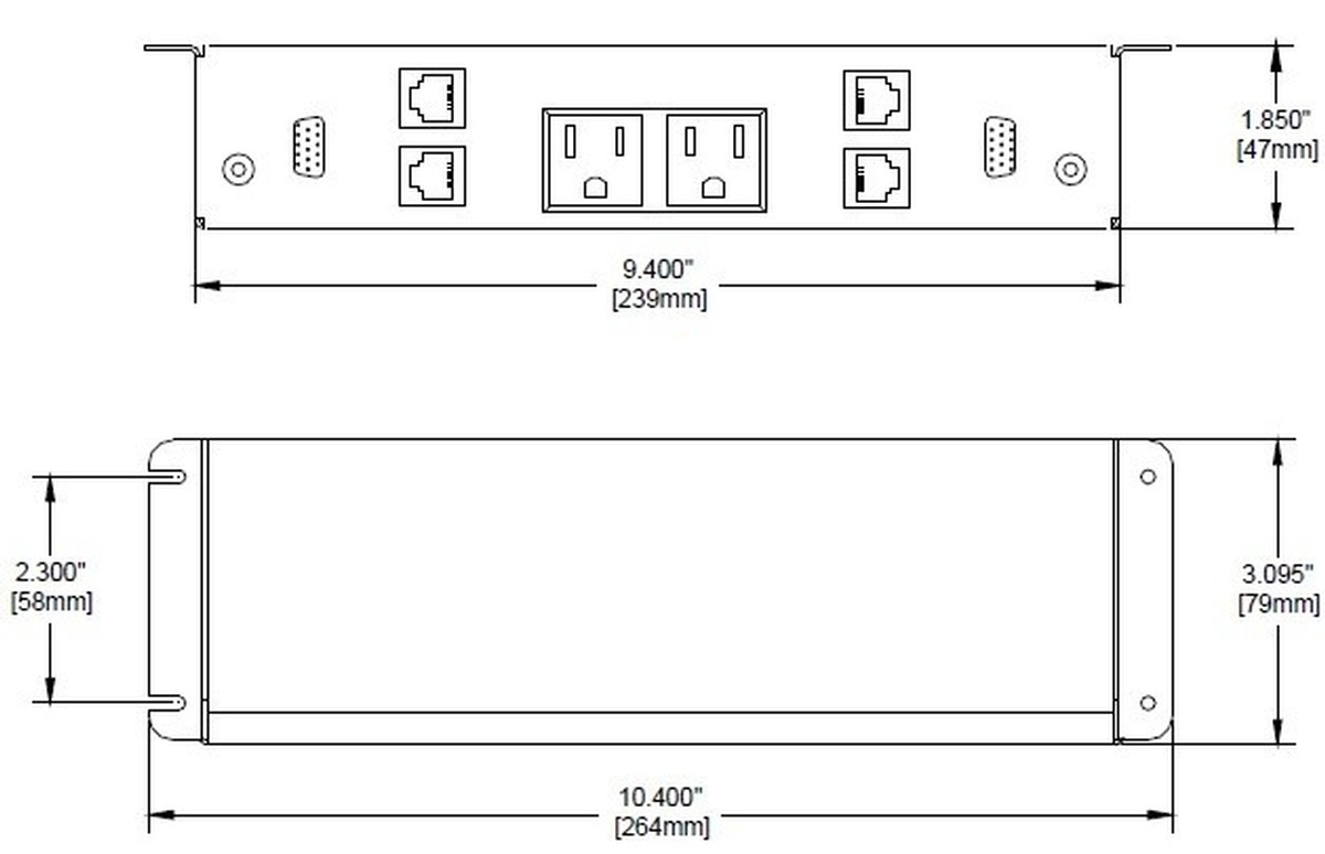 - Connections: 2 power, 2 HDMI, 2 audio, 2 Cat6, and 2 keystone blanks