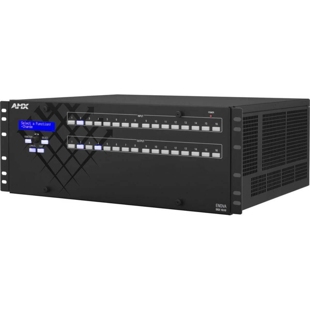The new Enova DGX 1600 Enclosure (DGX1600-ENC) is a Digital Media Switcher that is ready to support 4K and Ultra High Definition (UHD) content. This robust solution includes a NetLinx® NX Integrated Controller, redundant power supplies and can be populated with Enova DGX video input and output boards in addition to optional audio-switching boards. There are four connections per video board, and each enclosure holds four video input boards and four video output boards for a maximum matrix of 16x16.