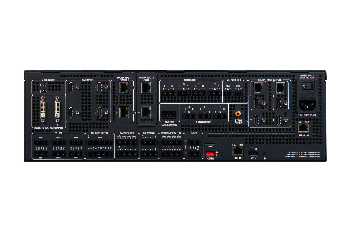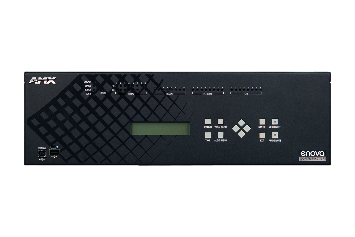 The AMX DVX-3256HD-SP was designed to be an all-in-one solution for your audio, video, and switcher for your room control needs. Take advantage of the DXlink inputs to bring in video from anywhere over easy to run Cat5e/6 cabling.