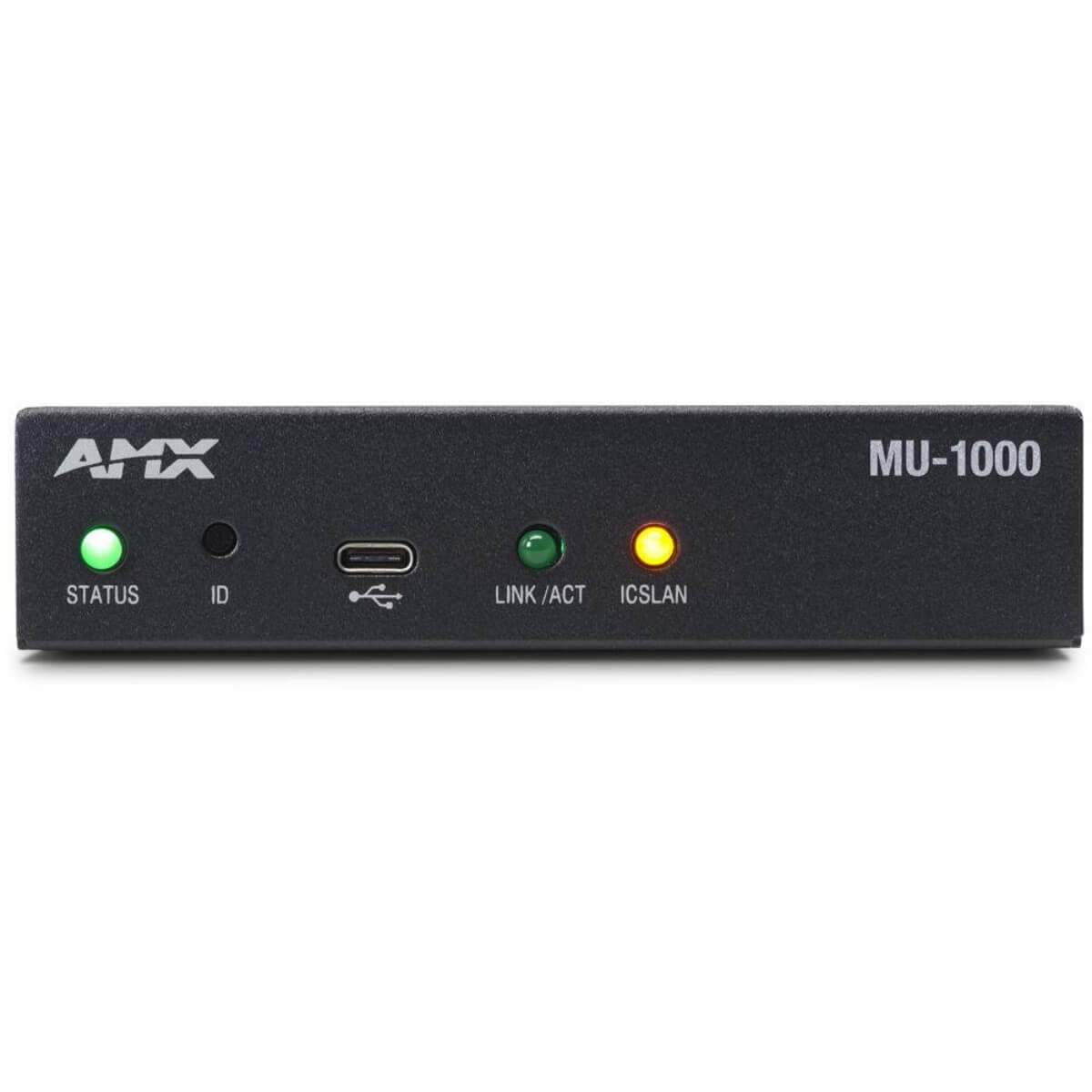 "The AMX MU-1000 MUSE Automation Controller is a powerful, secure, and reliable device that provides a dedicated computing resource running HARMAN Professional's AMX MUSE automation platform. The MU-1000 can simultaneously process a virtually unlimited number of scripts written in JavaScript, Python, or Groovy and natively supports Low-Code development with Node-RED. AMX MUSE Automation Controllers feature a modern embedded processor that's 10x faster than the processor in AMX NX Controllers, bountiful memory, and rugged, industrial grade eMMC storage. Built on HARMAN's secure Linux platform, MUSE controllers are designed to surpass the requirements of the most secure installations. Additionally, these Controllers natively support HARMAN's HControl (open-API), HiQnet (legacy HARMAN audio devices) and ICSP (legacy AMX control devices) protocols making them the ideal automation processor for any space, environment, or application - old and new. The MU-1000 is small enough to easily conceal and is powered with PoE to simplify installation even further. An ICSLan network port provides an isolated network for controlled devices."