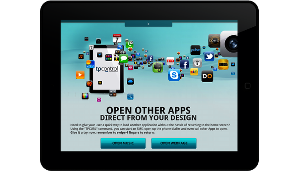 Use the TPDesign4 application to create the user interface and then use TPTransfer (available as a separate download) for licensing and transferring the TP4 file to the mobile device. The TPC-WIN8-TAB features voice control, app control, multiple profiles, intercom, lockout, TPCloud, and encryption.