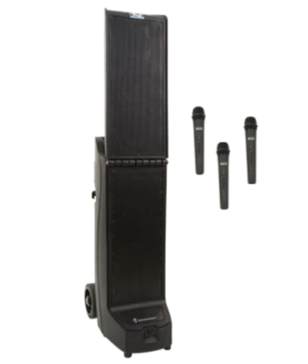 The Anchor Audio BIG-TRIPLE Bigfoot 2 Series sound systems provide you with an array of easy to use portable sound systems and microphone kits. These speakers are perfect for portable sound and voice amplification during indoor/outdoor events, weddings, house of worship, large auditoriums, parades, and community celebrations.