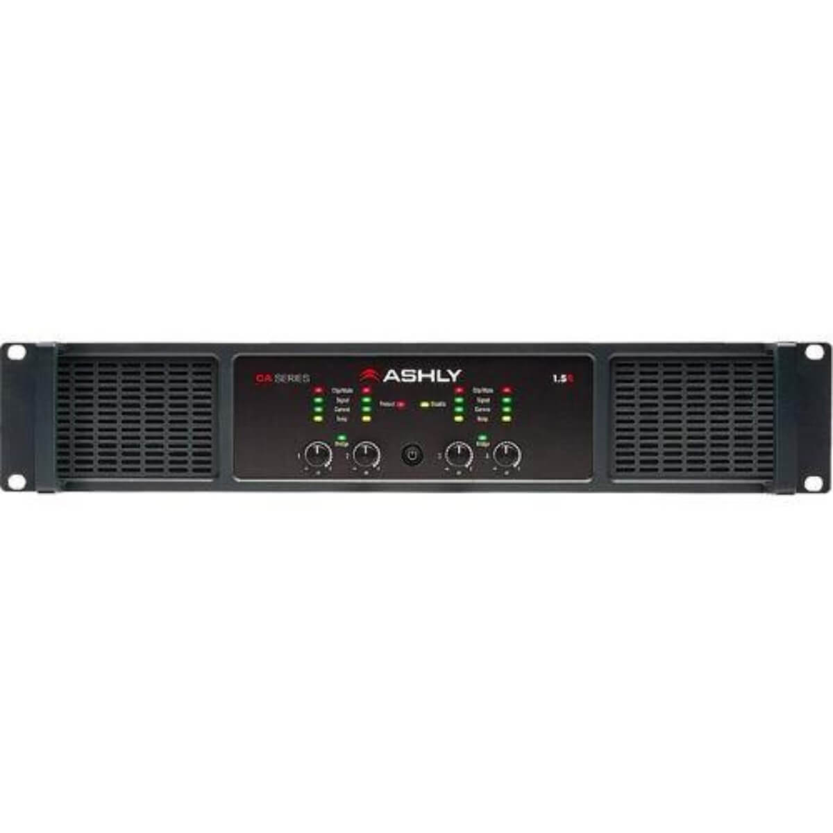 The CA1.54 is a 4 x 1,500W (@2/4 Ohms) Class D power amplifier in a lightweight 2RU fan-cooled chassis. It's unique D-MAX? amplifier technology delivers optimized efficiency and low thermal operation by the use of a new Ashly-developed Dynamic Power Factor Correction, high-speed switching power supply and lossless SiCO2 FET switches which eliminate switch-off noise and reduce wasted power and heat. The result is higher sounds output with lower current draw that most similar amplifiers. Additionally, the CA guarantees cool operation by incorporating a SailFlow directed active air cooling system, which maximizes airflow to the areas where the most heat is generated. The CA1.54 can be used as a typical Low Z amplifier for larger performance install speaker systems, but can also deliver 70/100V output power for use in distributed, constant-voltage sound systems. Channels are each equipped with an 80Hz HPF, Limiter and a VC remote volume control port. All Euroblock connections make installation easy.