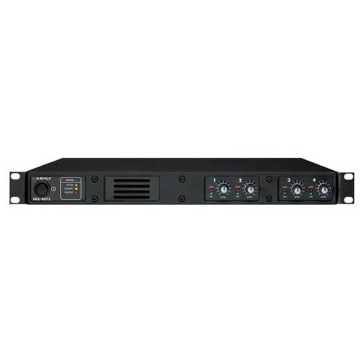SRA Convection-Cooled Amplifiers are advanced, efficient single-space amplifiers perfect for installations with modest power requirements. The SRA Series makes it a snap to get exactly what you need and nothing you don?t. Housed in compact single rack space chassis and weighing only 10 lbs, SRA Convection-Cooled Amplifiers are designed to drive 4 or 8-ohm loads. Choose from 4 models available in 2 and 4-channel configurations with power ratings of 75W and 150W per channel. The 150W models are capable of driving 25V constant voltage lines directly. Switch mode power supplies and Class-D amplifier circuitry provide an extremely power efficient solution.