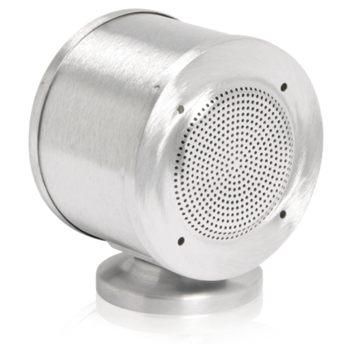 This compact aluminum baffle/enclosure is identical to the 410 Series with the addition of a circular mounting canopy complete with mounting hardware and second grille to enable bi-directional sound dispersion. Model 510-4 mounts a standard 4" (102mm) speaker. Aluminum housing is patch-jute lined and undercoated to allow clear, audible speaker performance by preventing mechanical and acoustic resonance. One grille per unit includes studs for convenient speaker mounting. Complete assembly installs to a 4" (102mm) octagon E.O. box (by others). Finished in satin brushed aluminum.