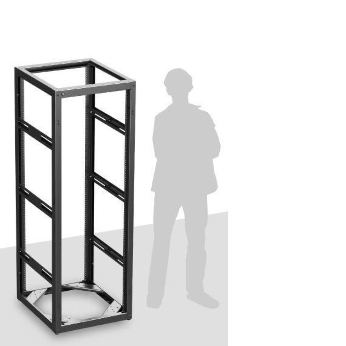 For single and multiple bay configuration installs requiring additional weight capacity and extended depths, AtlasIED offers the 14-gauge frame construction of the 735-25. The 735-25 is 22 1/2" wide, 25" deep, and has 35 vertical panel spaces. Multi-formed and welded frame members provide superior strength and load bearing capability. Base is constructed of double-formed front and rear sections, MIG welded and reinforced with 11-gauge CRS corner caster gussets. Vertical columns interlock with frame top and base adding double material thickness for superior load bearing capability. Mounting rail channel support members are multi-formed and MIG welded for superior interlocking support. Panel mounting rails are fully adjustable front to rear.
