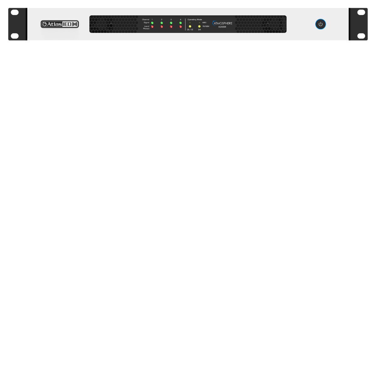 The AZA804 is ready to use out of the box in four-channel, 70V mode, with no additional configuration or network connectivity required, making them easily paired for use with AtlasIED Atmosphere signal processors.