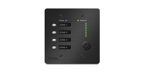 The BBWP-K4B is part of the BlueBridge DSP product line. The BBWP-K4B is a four-button wall controller that can be used to change any four preset selections with level control. It can also control button, preset, matrix connect, and mute functions. Using BlueBridge Designer software, you can virtually assign multiple actions to each button or level control.